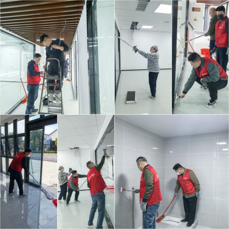 “支部建在項(xiàng)目上、黨旗插在工地上”。國(guó)泰地產(chǎn)黨支部始終堅(jiān)持黨建品牌與工程項(xiàng)目深度融合,項(xiàng)目在哪里黨員先鋒隊(duì)就在哪里。到達(dá)活動(dòng)現(xiàn)場(chǎng)后,黨員先鋒隊(duì)成員和志愿者們主動(dòng)拿起刮刀、塵推、地刷、掃把等10余件清潔工具,按照小組分工協(xié)作,清潔地面、清掃垃圾、擦拭玻璃,井然有序干起來,有的人頭發(fā)里沾滿了灰塵,有的人臉上掛滿了汗珠,有的人汗水濕透了衣衫。大家不嫌臟、不嫌累,熱情高漲,紛紛以為企業(yè)降本增效為榮,樂在其中。