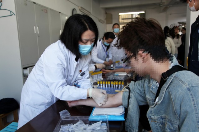 上午7點50分,在學校老師的帶領下,學生們早已經整齊列隊等候在體檢中心門口。為確保體檢工作順利進行,醫(yī)務人員首先為他們詳細講解了各項體檢的注意事項。8點鐘,學生們列隊有序進入體檢現(xiàn)場。體檢現(xiàn)場設置了內科、外科、五官科、抽血等檢查點,工作人員均提前就位,以飽滿的熱情迎接同學們的到來。在醫(yī)務人員及老師的協(xié)同引導下,同學們依次接受心肺聽診、血壓測量、視力檢測、聽力篩查、血液采集、胸部 X 線透視等各項檢查。整個體檢過程有條不紊,現(xiàn)場秩序井然,體檢工作人員態(tài)度和藹、認真細致地為學生們做著每一項檢查,同時全方位做好學生引導、分流工作,確保體檢高效、安全、順暢進行。