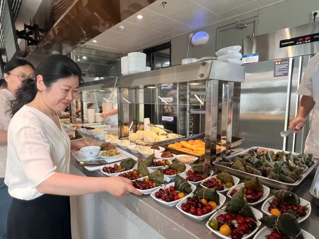 次日中午,集團(tuán)工會在員工餐廳精心準(zhǔn)備了色彩繽紛的水果拼盤、香甜軟糯的蜜棗粽子,為集團(tuán)員工送上節(jié)日祝福。大家圍坐在一起,一邊分享昨日包粽的趣事,一邊品嘗蜜粽鮮果,食堂里洋溢著歡聲笑語。