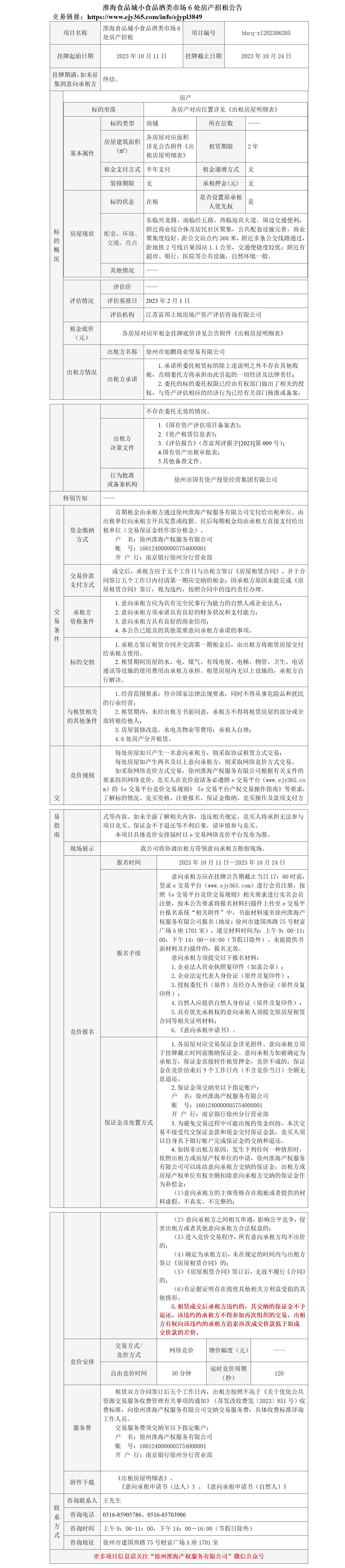淮海食品城小食品酒類市場(chǎng)6處房產(chǎn)招租公告