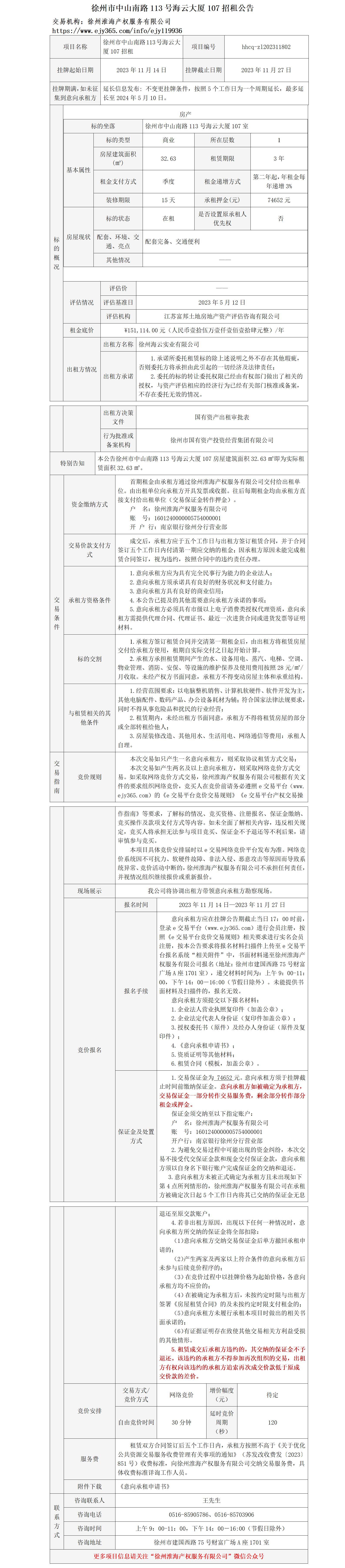 徐州市中山南路113號海云大廈107招租公告