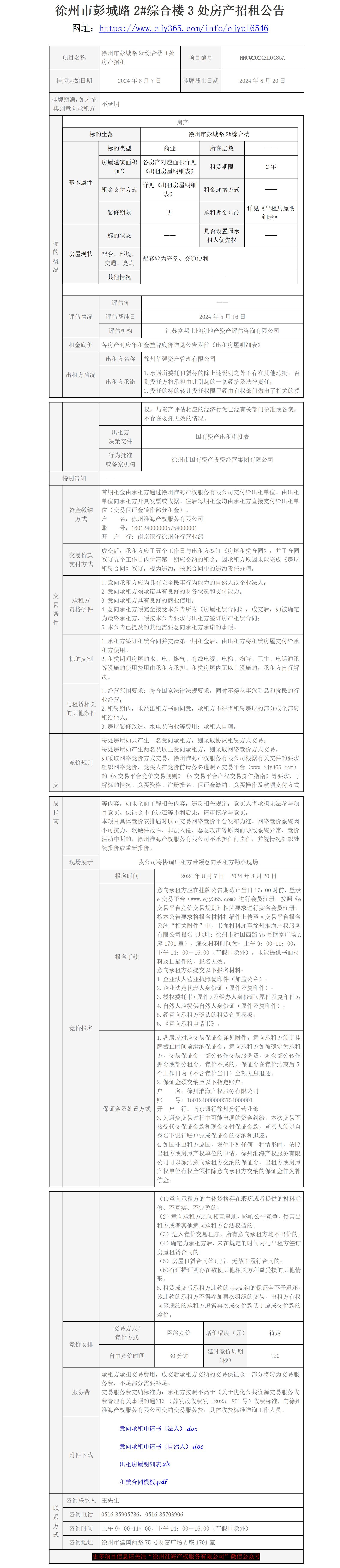 徐州市彭城路2#綜合樓3處房產(chǎn)招租公告