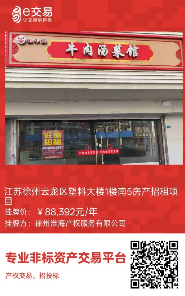 江蘇徐州云龍區(qū)塑料大樓1樓南5房產(chǎn)招租公告