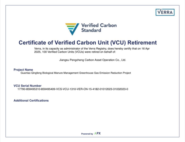 江蘇彭城碳資產(chǎn)運營有限公司已通過購買國際自愿減排(VCS):館陶縣慶豐生物科技有限公司糞便管理溫室氣體減排項目,用于活動能耗和包括參會者們在活動中產(chǎn)生的二氧化碳當(dāng)量溫室氣體排放,實現(xiàn)活動碳中和。